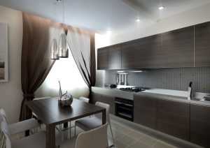В современных декорах потребуются современные занавески. Особой популярностью сегодня пользуются римские шторы, украшенные элементами фотопечати или витиеватыми орнаментами. Такие шторы не «воруют» пространство, наоборот, удачный рисунок способен сделать его бесконечным, уводящим вдаль. К тому же материал римских штор прост в уходе. Его можно неограниченно мыть, что для кухонного помещения немаловажно.