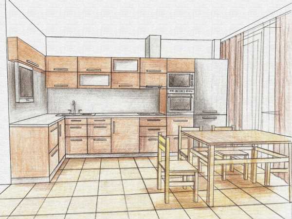 - Сначала нужно составить чертеж или рисунок вашей будущей кухни. Так вы быстрее поймете, где и как разместить мебель, в какой цветовой гамме будет ваша кухня и какие аксессуары понадобятся для ее интерьера.