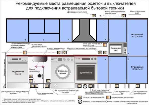 - Вся представленная бытовая техника имеет определенную мощность. Если Вы к своей старенькой розетке все это подключите, у Вас просто перегорят провода. Получается, что нужно делать отдельную разводку электричества на кухне, заходите и читайте