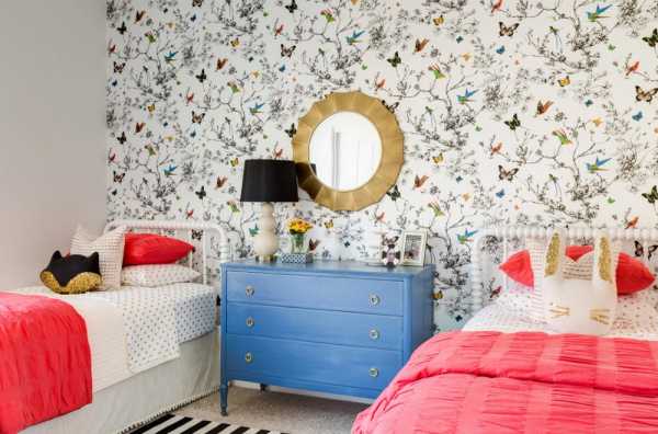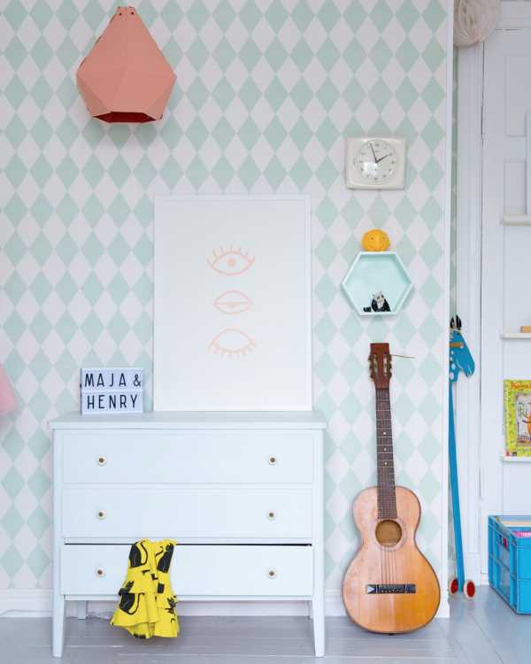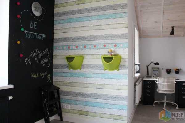 Обои для детской комнаты, в которой будут жить дети разного пола, лучше купить совершенно нейтральные, а стены возле каждой кроватки оформить по-разному: ковриками, картинами, плакатами, наклейками, игрушками и сувенирами, фотографиями и поделками, для мальчика – одними, для девочки – другими.