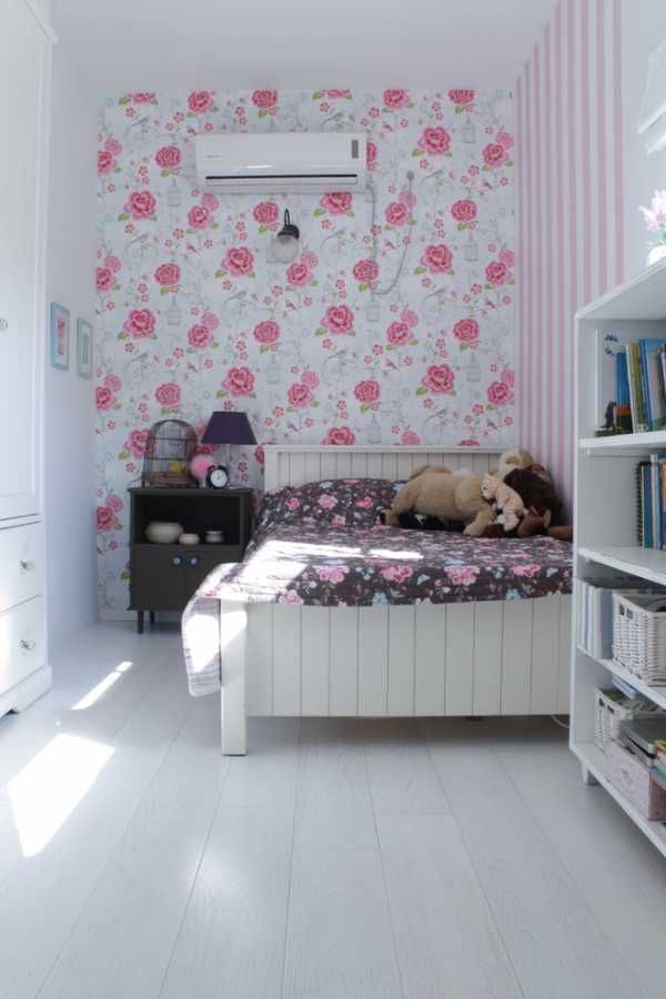 Сразу скажем, что ни в маленькой детской комнате, ни в большой не место дорогим вещам, все в ней должно быть практичным, гигиеничным, экологически безопасным и нравящимся прежде всего самому ребенку. Для стен и потолка рекомендуем простую «дышащую» побелку и бумажные обои. Для пола лучше выбрать ламинат или линолеум, негорючее и легко чистящееся ковровое покрытие. Чтобы помещение визуально смотрелось более просторным, дизайнеры рекомендуют использовать светлые тона.