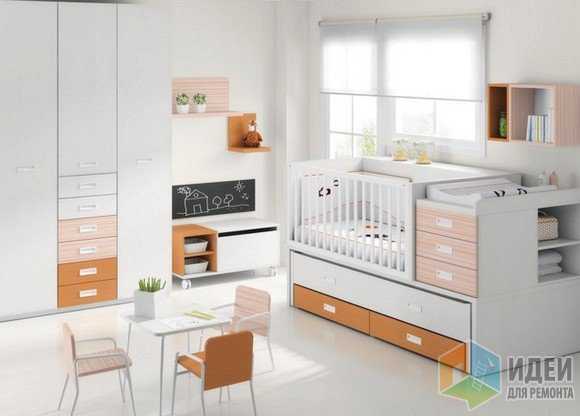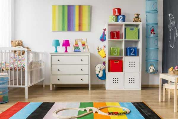 С новорожденными все просто. Им необходим базовый минимум: пеленальный столик (ставьте его в хорошо освещенном месте), кроватка, комод для вещей, кресло для мамы. Постепенно понадобится небольшой ковер и коробка для складирования игрушек.