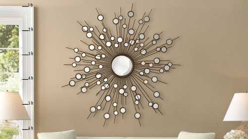 Такой декор имеет свои специфические особенности ввиду рамки большого размера, и выпуклого зеркала. Выпуклое зеркало можно купить в любом автомагазине. Для создания декора вам понадобится клей, обычный нож, потолочный медальон и краска. Сперва нужно окрасить потолочный медальон в тот цвет краски, которую вы выбрали. Если у вас автомобильное зеркало дальнего вида, то лучше его достать из рамки. Действия эти нужно проделывать очень аккуратно, так как вы имеет дело со стеклом. Сначала нужно срезать резиновую полосу, а затем отогнуть рамку зеркала при помощи плоскогубцев. После чего вам нужно приклеить ваше зеркало к оборотной стороне потолочного медальона. И ваше зеркало готово украсить любой интерьер!