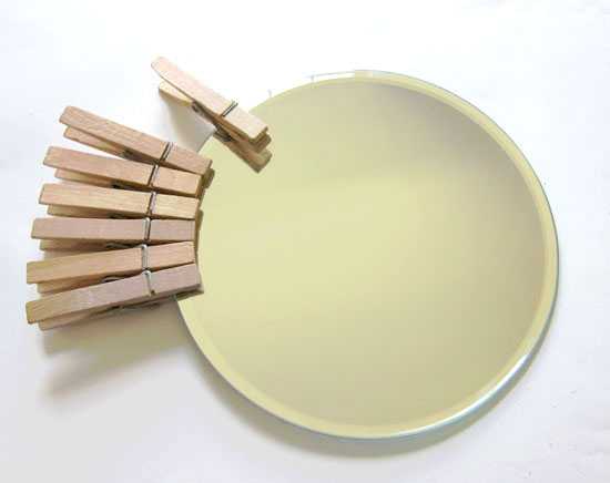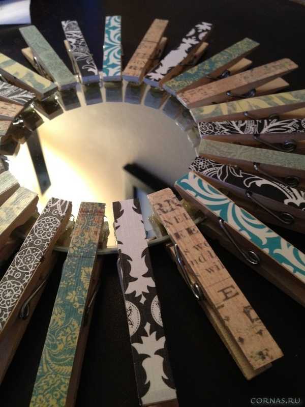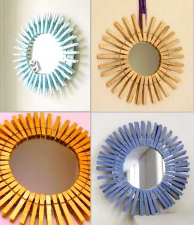 Прищепки есть в каждом доме, а ведь это хорошее средство, для создания веселой рамки для зеркала.