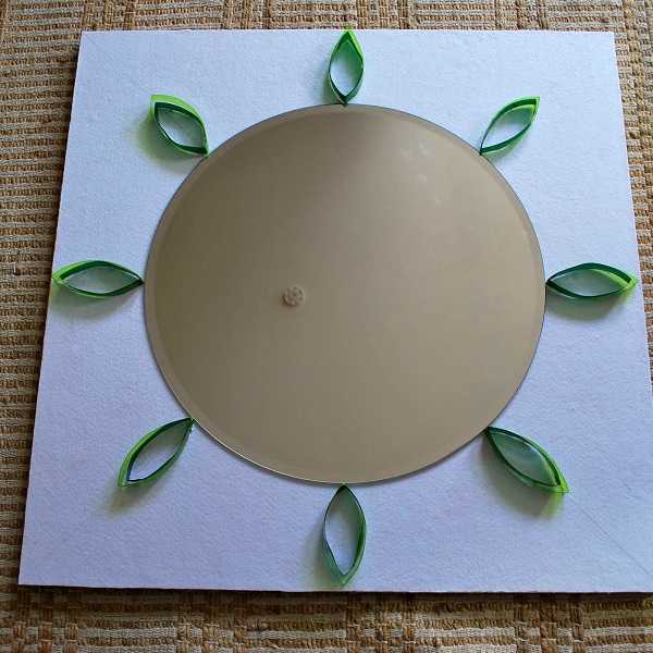 Кольца можно склеивать каким угодно образом, необязательно, как на фото, композиция может иметь и квадратную, и овальную форму. Рекомендуется ее делать в соответствии с формой зеркала.