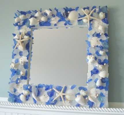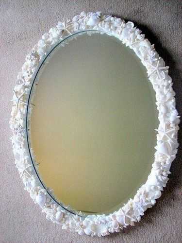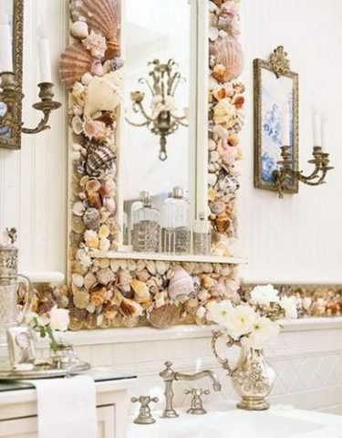 Интересно будет смотреться зеркало, выполненное в морском стиле. Для его декора можно использовать ракушки, кораллы, раковины.