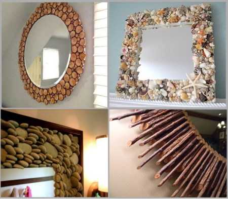 Есть множество идей для украшения зеркал с использованием легкодоступных и относительно дешевых материалов