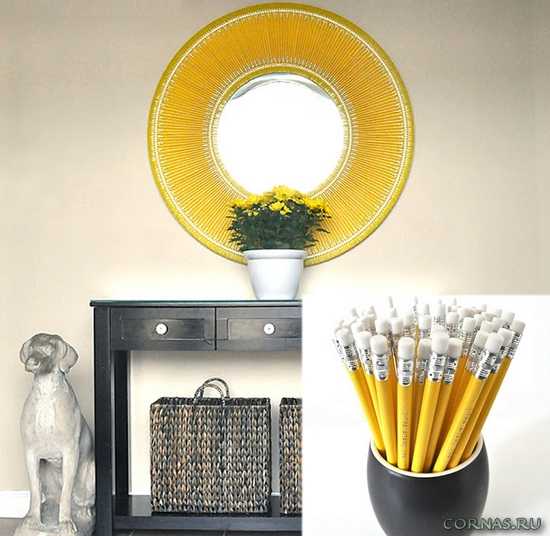 Тут уж фантазии есть где разыграться! Обычное зеркало с помощью того же клеевого пистолета можно украсить: