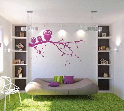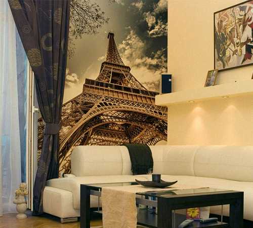 Интересного эффекта можно достичь, если использовать фотообои с эффектом 3D, когда уходящая вдаль перспектива на одной стене уводит на природу, а с другой стороны имитирует дверь. Правда, получится ощущение проходной комнаты, зато она будет казаться намного больше, чем на самом деле. Еще больше впечатляют художественные коллажи из обоев и зрительные иллюзии, где трехмерное изображение как бы все время движется. Однако мнительным и пугливым людям, а также личностям с психическими отклонениями такие обои противопоказаны.
