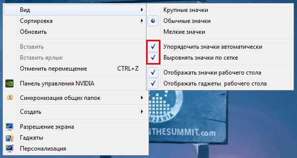Также можно нажать «Упорядочить значки» и оставить птичку около «Выровнять по сетке», чтобы значки были нормально расположены и не смещались.