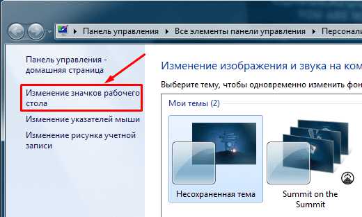 Для изменения установленных по умолчанию иконок папок «Компьютер», «Корзина», Сеть» нажмите правой кнопкой на рабочем столе и выберите пункт меню «Персонализация».