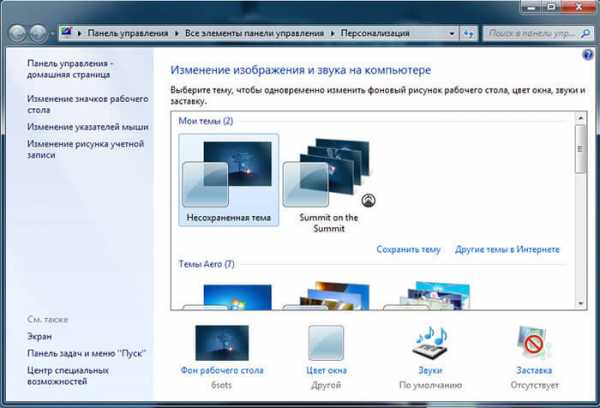 Отдельное внимание хотелось бы остановить на пункте «Персонализация», ведь с его помощью можно изменить оформление кнопок и папок, поставить новые обои, темы и заставку. Для настройки стартового экрана согласно собственным желаниям и предпочтениям следует перемещаться по соответствующим вкладкам и пунктам.