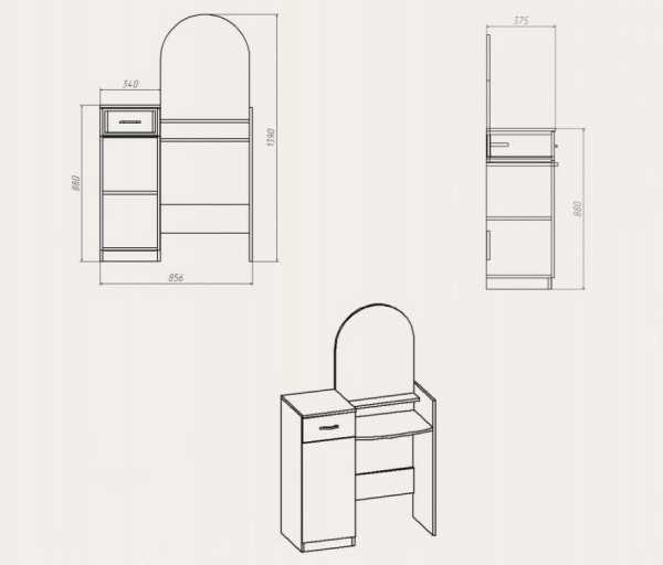 В первую очередь измерьте пространство, в котором будет расположен ваш будущий туалетный столик, это поможет разобраться с необходимыми размерами при выборе. Также старайтесь ориентироваться на следующие показатели: