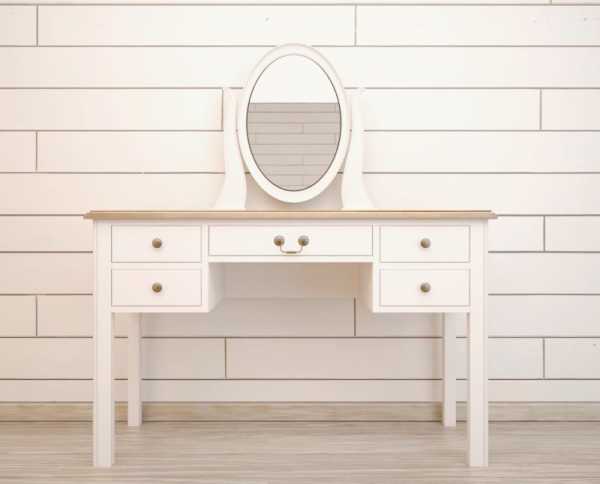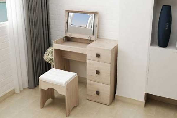 Туалетный столик без зеркала – отличное решение для маленьких помещений, зеркало для него докупается отдельно, и хозяйка размещает его самостоятельно. Устанавливается на столешницу комода или вешается на ближайшую стену.