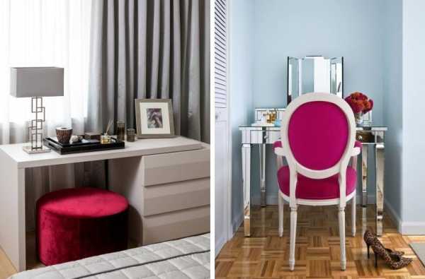 Основное правило при выборе одного из этих элементов мебели – это абсолютное удобство при эксплуатации. Именно поэтому, если у вас достаточно пространства в зоне туалетного столика, выбирайте комфортабельное кресло с мягкой спинкой или маленький и удобный диванчик. Организовав такое «рабочее место», вы забудете о неудобствах во время нанесения макияжа или укладки волос. Это чрезвычайно полезное приобретение.