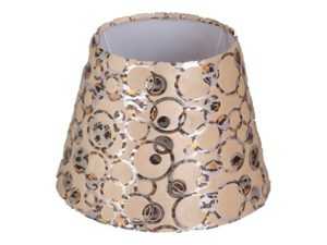 Наиболее простым вариантом является оклеивание плафона обоями. Выбирать подходящую бумагу следует, освещая ее лампочкой, чтобы заранее понимать какой свет будет при включенном состоянии. Далее необходимо сделать измерения и отрезать подходящий кусок обоев. Плафон снимают с ножки осветительного прибора и протирают специальным обезжиривающим составом. Далее на него наносят клеевой состав и приклеивают обои. Сильно прижимать руками их не рекомендуется, т.к. могут образоваться нежелательные воздушные полости и бугорки. После того как обои подсохнут, абажур возвращается на ножку.