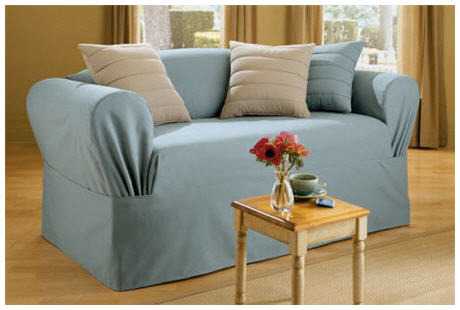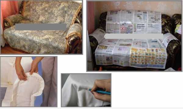 Обшивку мебели даже на фабрике заранее не шьют по точной выкройке, рабочие обтягивают и фиксируют закрепками натянутые края. Поэтому лучше не пытаться в точности повторить форму вашего дивана при помощи выкройки. Лучше сделать чехол на диван свободной формы, чтобы изменить внешний вид, а не просто перетянуть обшивку дивана.