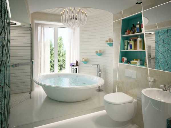 Не забываем о светлых тонах отделки. Плитка может быть средних или малых размеров. Выигрышным вариантом в оформлении маленькой ванной комнаты станут зеркальные поверхности и глянцевые натяжные потолки.