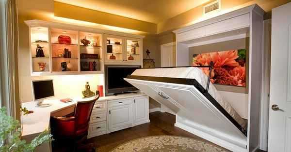 Еще одно нестандартное решение — установить поднимающуюся кровать. Днем она выглядит как обычный шкаф, а вечером опускается и становится кроватью. Интересное и практичное решение, сразу решающее многие проблемы. Причем вариант сегодня не один — есть разные системы и виды, появились и отечественные производители.