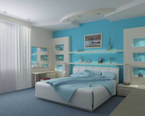 Ученые говорят, что красивые синие обои являются наилучшим решением для спальни. Именно этот цвет лучше всего расслабляет и настраивает на хороший крепкий сон. Можно также выбрать флизелиновые обои и покрасить их синей краской, в итоге получится красивое покрытие с необычным рельефом. Также теплые оттенки лучше использовать в спальне, выходящей окнами на север, а вот холодные цвета следует использовать только в комнате, выходящей окнами на юг. В противном случае может получиться холодная и неуютная комната.