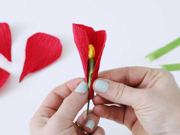 - Сформируйте бутон, сложив все заготовки и придав им форму тюльпана.