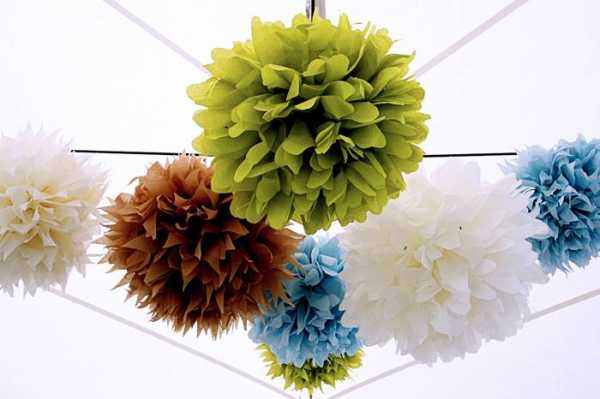 Украшение торжества большими цветами из крепированной бумаги