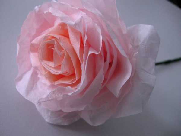 Изготовление розы из гофрированной бумагиСовет! Большие цветы из гофрированной бумаги придадут любому празднику некой сказочности, у детей вызовут бурю восторга, а взрослых на какое-то время перенесут в детство.