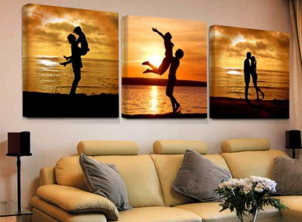 - однообразная линия из фотографий никак не приукрасит Вашу комнату, а, наоборот, сделает ее скучной и неинтересной;