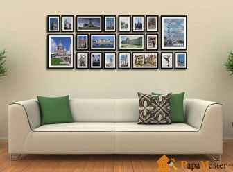 - фотографии лучше вешать на уровне глаз человека, слишком высоко или низко размещенные снимки просто неудобно смотреть;