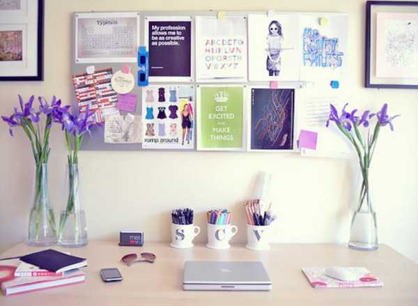 Это универсальный и самый быстрый способ оформить свое рабочее место. Прикрепи на нее любимые фотографии, вырезки из журналов, дорогие сердцу открытки – что угодно, лишь бы радовало глаз и навевало приятные воспоминания.