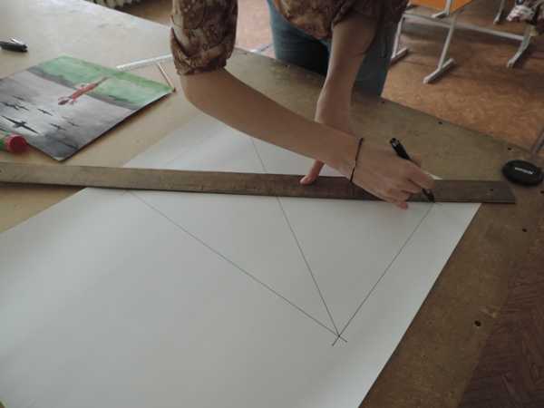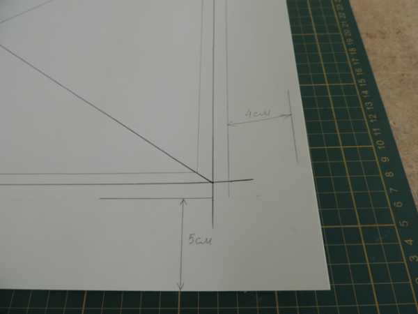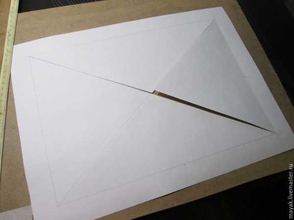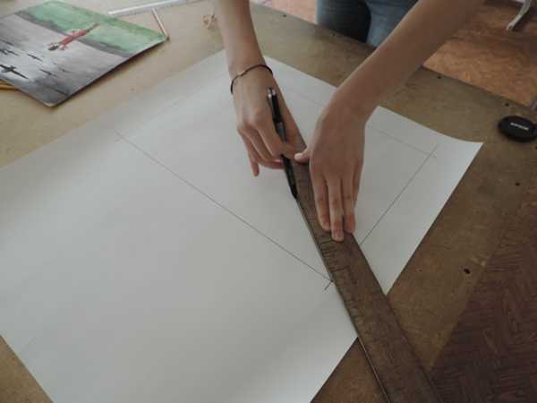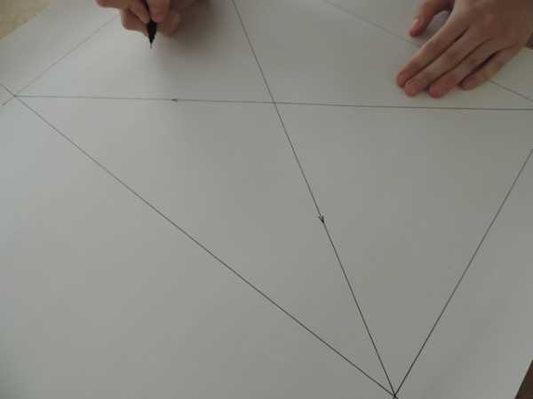 3. Далее. Начертив прямоугольник расчерчиваем крест накрест две линии. Строго из угла в угол (как показано на верхнем снимке).