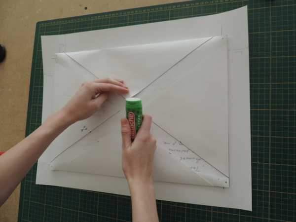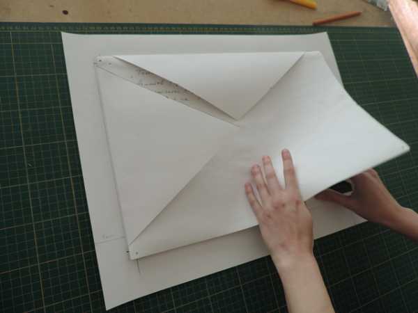 Ножом аккуратно, не прорезая бумагу, сделаем надрезы и отвернем, теперь уже в обратном порядке наши треугольнички-конверты.