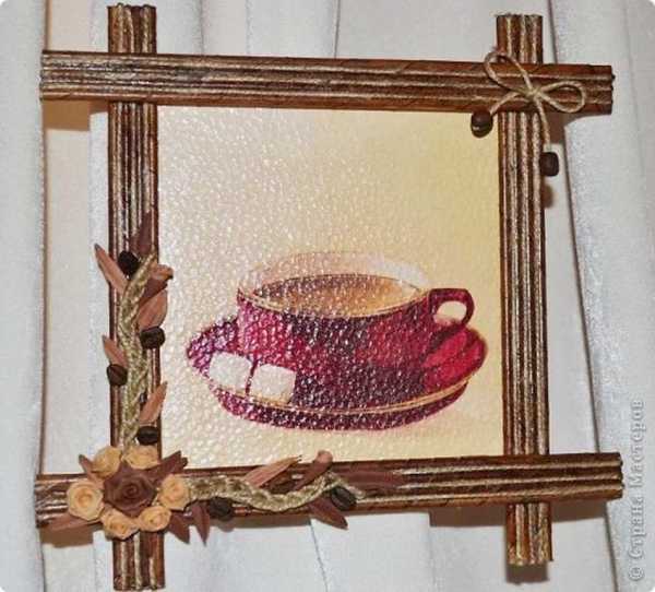 Рамка из толстых и грубых веток тоже смотрится отлично. Пошаговые фото здесь.