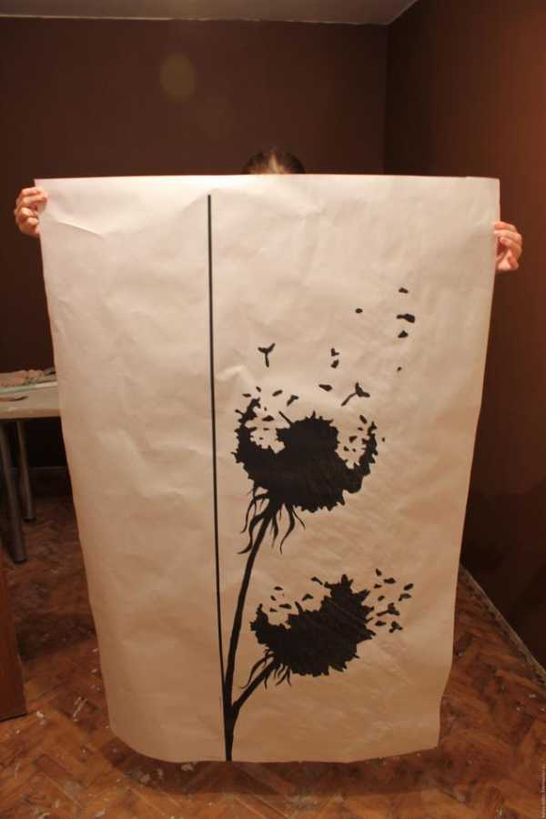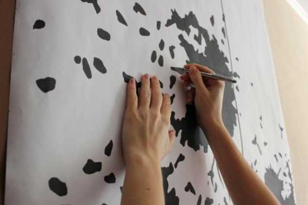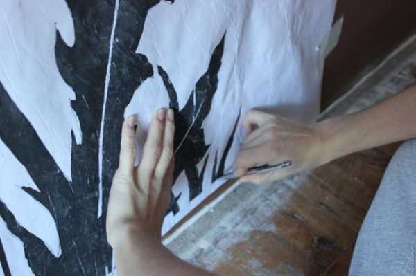 Помните, как в детстве переводили рисунки на белый лист с помощью копирки? Копирку размером со стену достать проблематично, но можно ее заменить. Для этого сперва распечатайте рисунок. Можно заказать печать нужного размера в типографии на тонком листе, а можно распечатать и дома на листах А4, которые потом склеиваются скотчем.