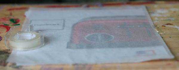 8. Прикрепляем кальку к картону рисунком вверх и натертой графитов стороной вниз.