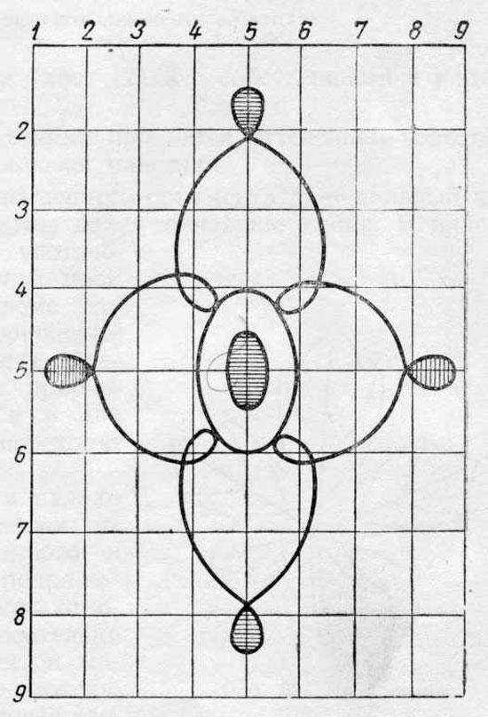 Самый маленький рисунок можно увеличить до любого размера путем клеток. Делают это следующим образом. Рисунок легко разлиновывают карандашом на одинаковые клетки так, чтобы на нем получился род сетки. Затем на листе бумаги, размером равной увеличенному рисунку, тоже размечают и линуют клетки, в том же количестве, что и на рисунке, но в большем масштабе. Для удобства клетки нумеруют. Копию линий рисунка переносят в большие клетки.