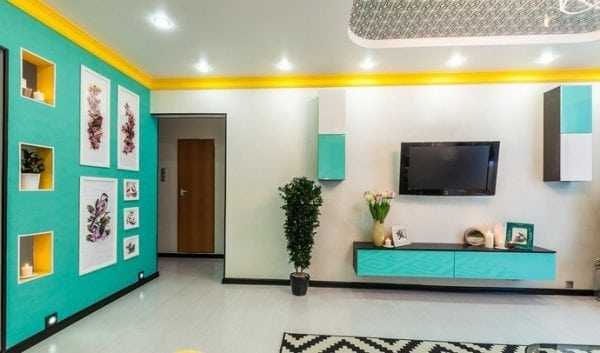 - Для придания помещению яркости можно окрасить смежные стены в резко-контрастные цвета.