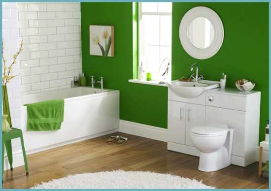 - Акцентная стена. Три стены в ванной окрашивают в нейтральный оттенок, а на четвертой делают акцент, используя более глубокий цвет.