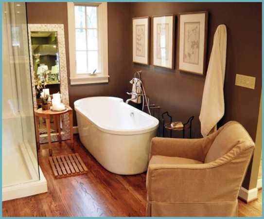 Уже после этого можно переходить к подбору цветового решения помещения. Если комната будет оформляться в стилях кантри или прованс, то для отделки следует выбрать светлый кафель, побелку и мебель из дерева.