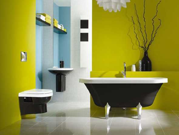 Желтый – цвет солнца, тепла и энергии, но такая яркая обстановка в ванной подойдет не каждому. Позитивный цвет станет отличным дополнением к другим оттенкам, но в качестве основного фона его используют редко.