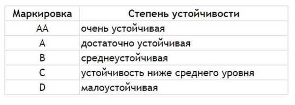 Степень устойчивости керамической плитки к воздействию химических веществ