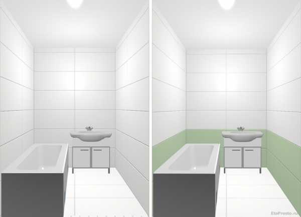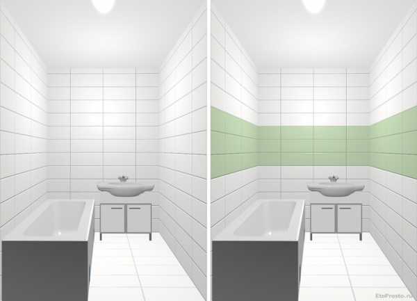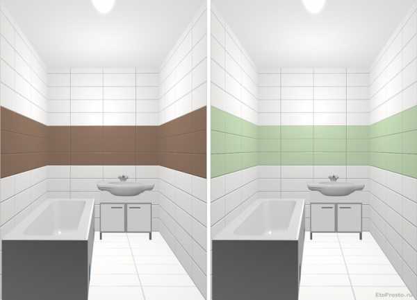 Самым распространенным примером использования кафеля двух разных оттенков является отделка стен с выделением цокольной части.