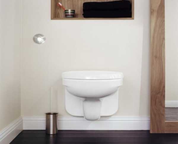 2. Говоря простым языком, оборудование данного вида представляет собой гибрид подвесного и напольного туалетов. Сантехника стоит на полу, но прижимается плотно к стенке.