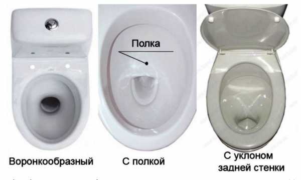 Почти все современные производители отказались от этого варианта и теперь выпускают конструкции с чашами, имеющими форму воронки. В подобном случае продукты жизнедеятельности сразу же сбрасываются в воду по сливу.