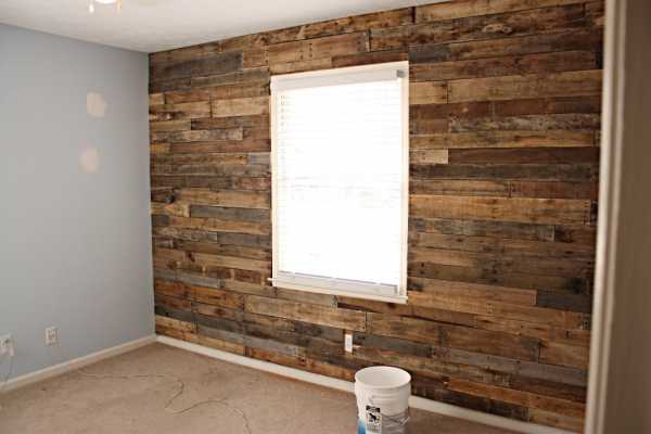 - Использование доски из поддонов или старых ящиков – решение, которое обходится вам практически бесплатно, так как можно и найти данные изделия, а зачастую после строительства они скапливаются и просто сжигаются или выбрасываются. Вам нужно разобрать их, после чего можно слегка зачистить поверхность и использовать в первозданном виде, который отражает налет времени и придает поверхности особый шарм;