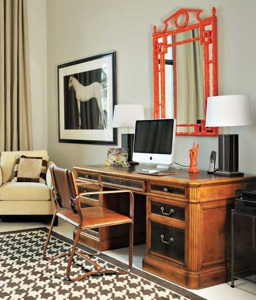 Зеркало — отличный выбор для декора кабинета в стиле классики и ар-деко, а также для женской рабочей зоны.