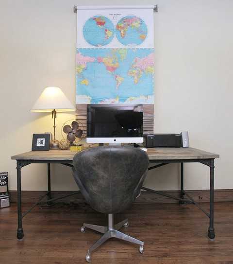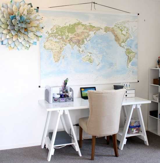 Этот вариант аналогичен оформлению картинами и постерами. Отрываться от работы и смотреть на карту так же полезно, как и на пейзаж (при условии, что карта цветная). Взгляд на обобщенное изображение поверхности Земли мгновенно снимает напряжение.