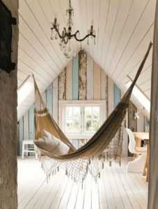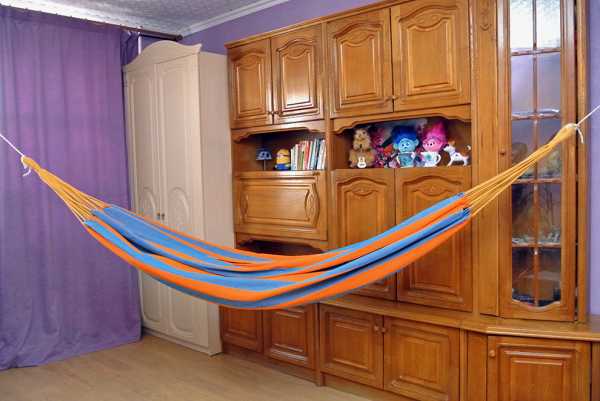 - Определяем место для крепления гамака. Учтите, что в выбранном помещении места должно быть достаточно и в длину, и в ширину (ведь гамак будет не только висеть, но и раскачиваться).