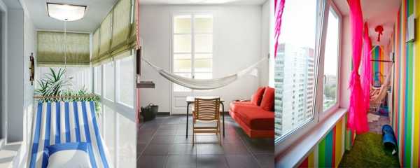 Самое популярное место для гамака в квартирах — застекленный балкон или лоджия. Лоджию можно преобразовать для выполнения разных задач, об этом мы писали в статье «Возможности лоджии часть 1 и часть 2». Одно из популярных решений — сделать балкон зоной отдыха, тогда гамак впишется идеально.