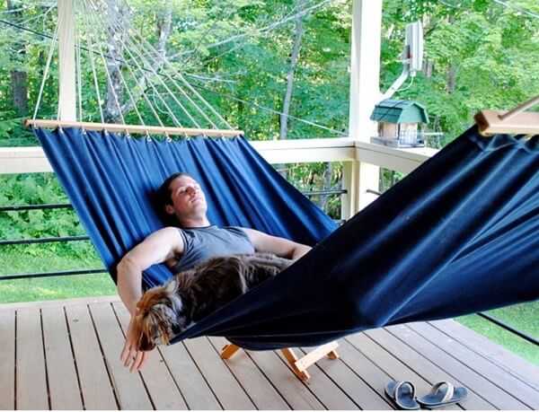 Гамак станет отличным местом для просмотра ТВ или фильмов на вашем компьютере. Причём если у вас 2х местный гамак, это отлично можно делать вдвоём со своим любимым человеком.